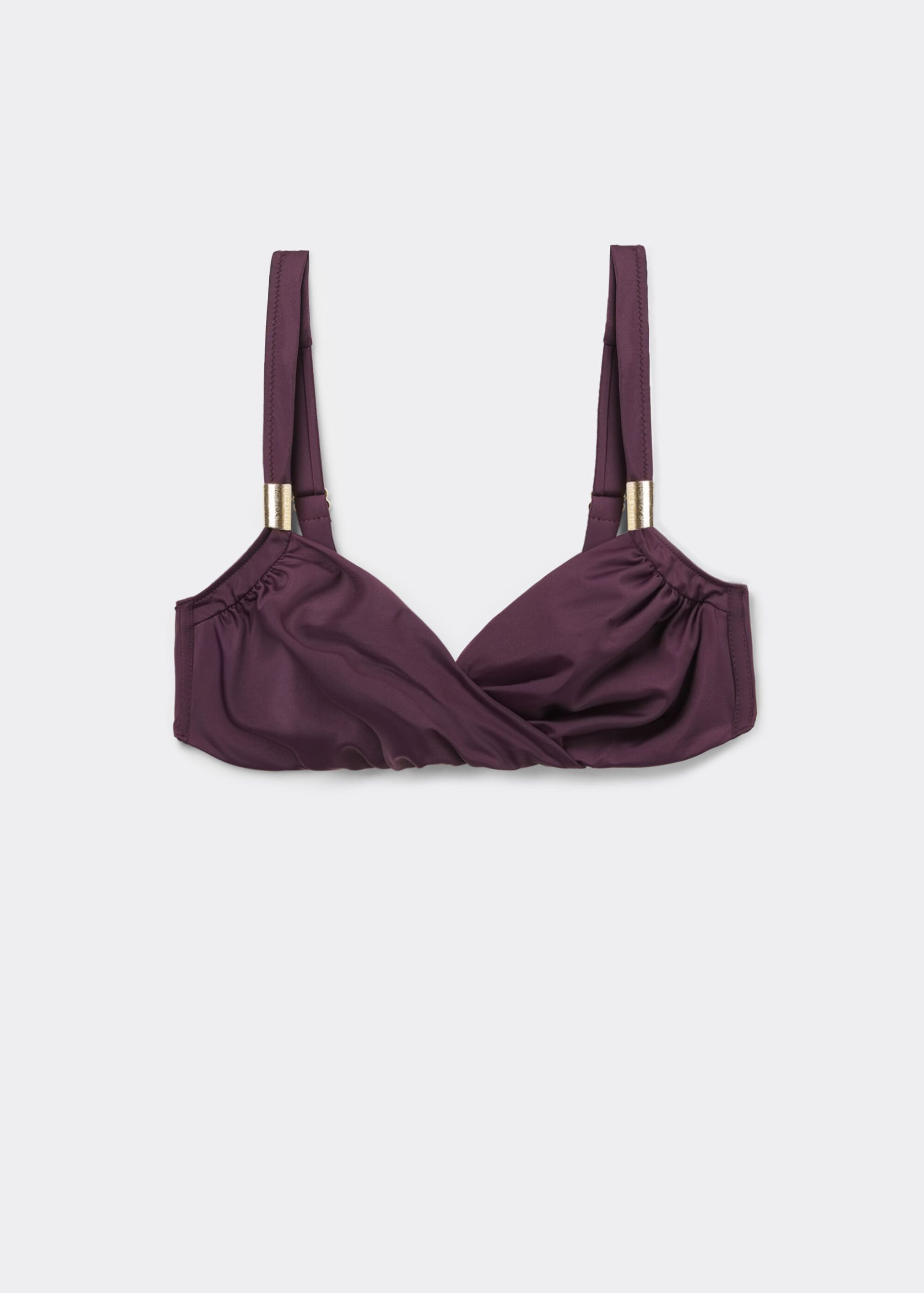 Unpadded balconette bikini top with underwire, embellished with an elegant central crisscross detail. The structure of the cups and the wide fit at the sides provide good support for larger busts. The compact fabric, designed to exalt and enhance the body’s curves, ensures excellent support and is studied to make every woman feel at ease without constraint. Adjustable shoulder straps. Back closure with two hook-and-eye closures to improve the fit of the underband.