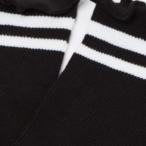Women’s short socks in soft cotton. The micro-ribbing offers a refined touch and right amount of stretch. The romantic edge and contrasting color bands add a subtle and feminine originality.