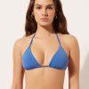 Brazilian cut bikini bottom with side ties to adjust the fit. The style features a bright fabric with a silky effect, embellished by ruffles and gold tips. Fully lined with invisible seams.