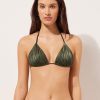 Brazilian bikini bottoms with thin side ties to adjust the fit. The slightly rounded waist at the front allows for both a classic or more high-cut fit, depending on one’s physique. The style features three-dimensional especially soft fabric with diagonal motif. Fully lined with invisible seams.