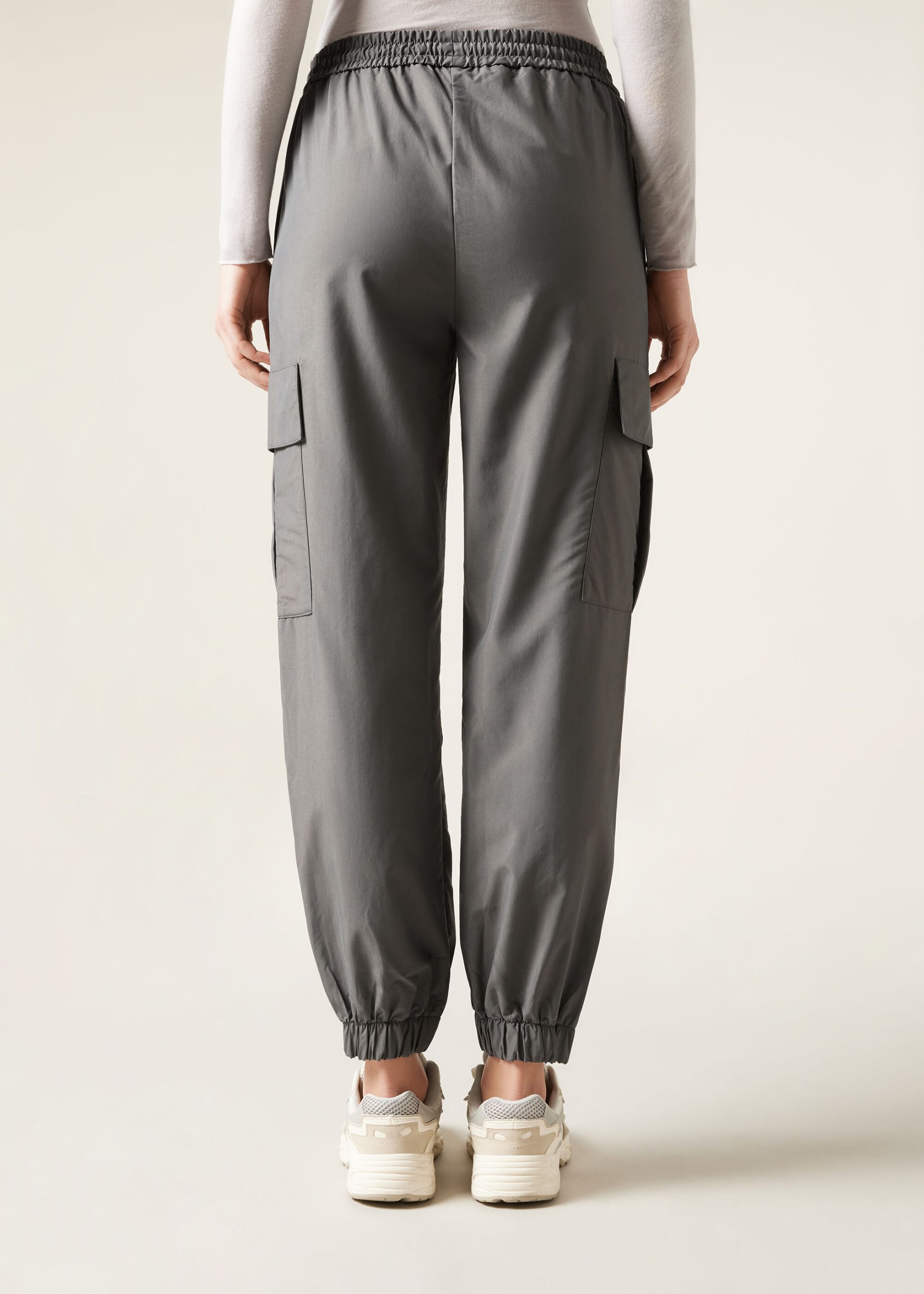 Cargo pants in soft touch modal, featuring convenient side pockets and cuffed hems for a modern fit. The elastic drawstring waist offers comfort and practicality, making them perfect for a casual and functional look.