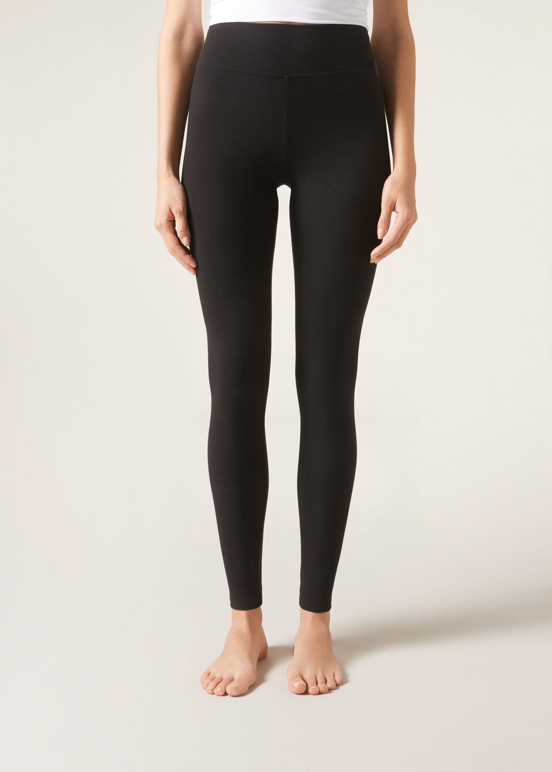 Women’s ribbed cashmere blend modal leggings featuring a comfortable high waist with soft elastic. The fabric is opaque, soft, and breathable, with a brushed interior for a warm and comfortable effect, ideal on the coldest days.