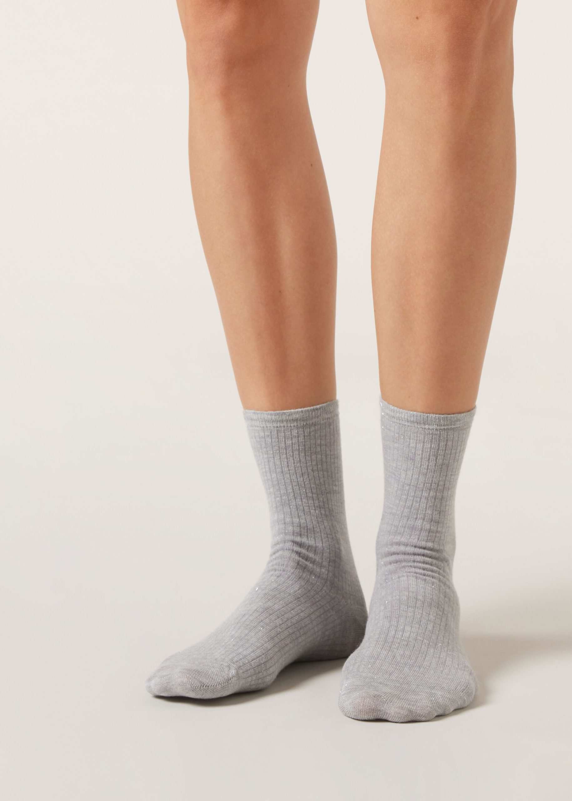 Women’s short socks in soft cashmere featuring a ribbed construction and sparkling glitter.