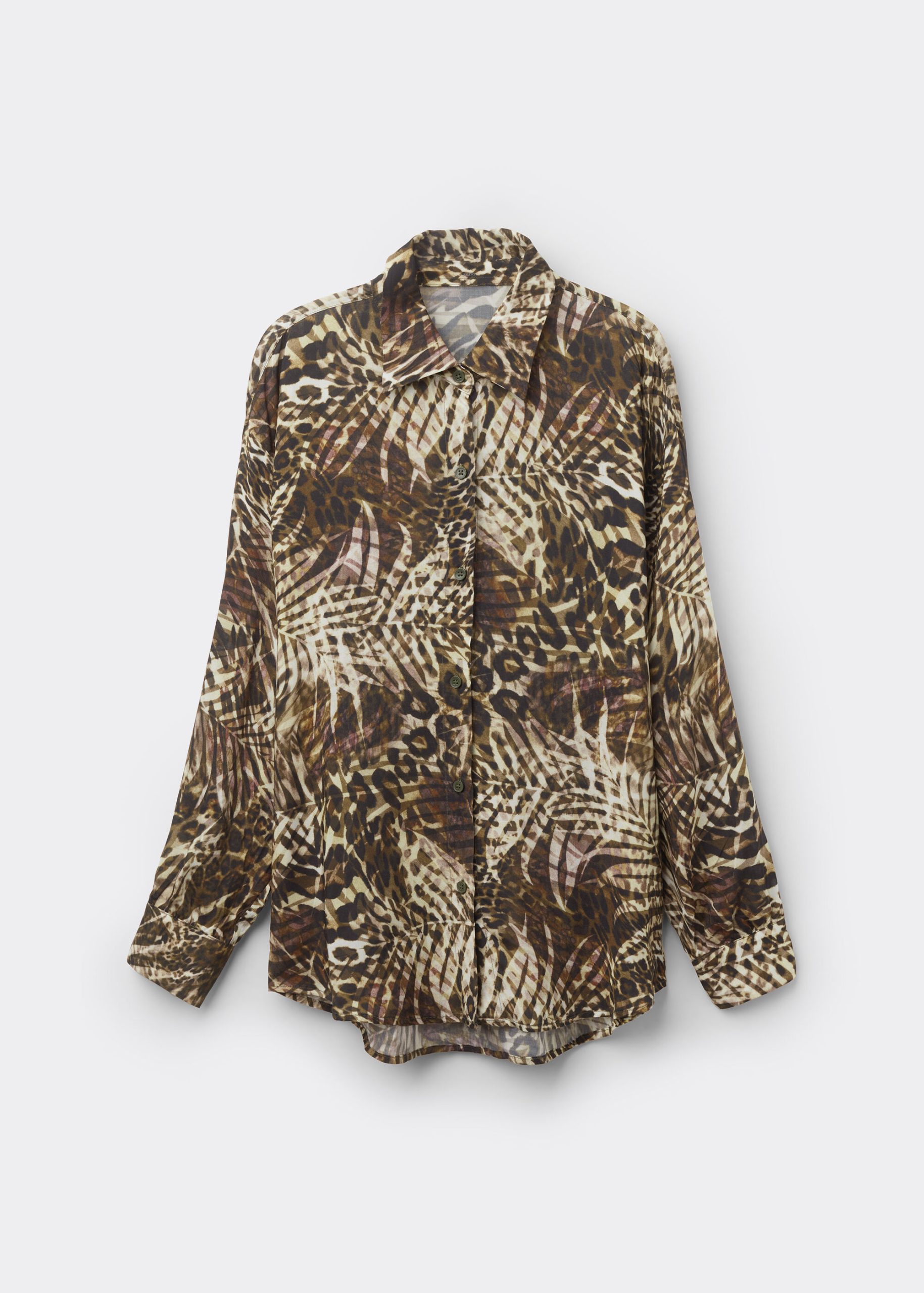 Cropped button-down shirt in animal-print viscose, ideal as a cover up or to finish off a summer outfit. Featuring buttons, a shirt collar and long sleeves, it pairs perfectly with 0BDP148 pants.