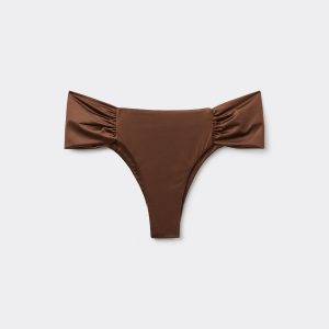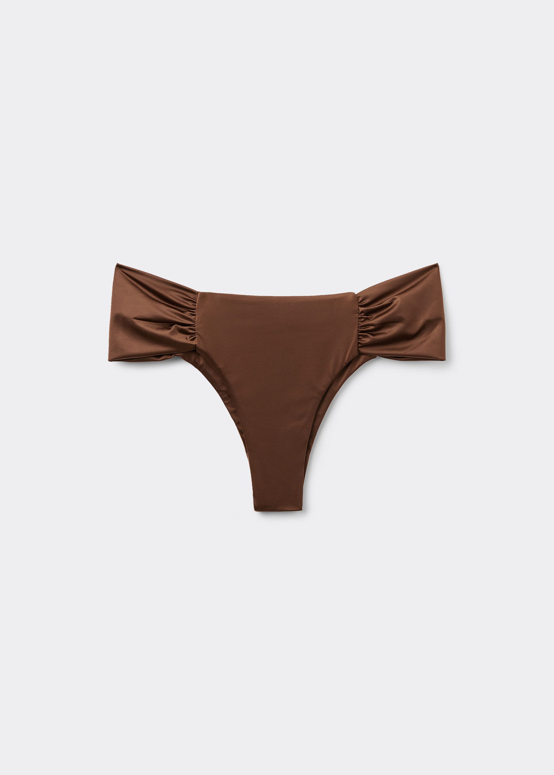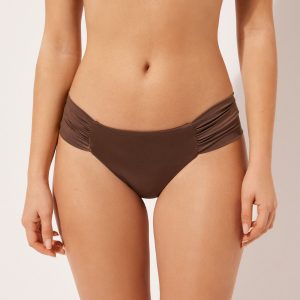 Brazilian bikini bottom with draped fabric at the sides that allow the height to be adjusted. The style features a particularly soft, shiny, silky-effect fabric. Fully lined and with invisible seams.