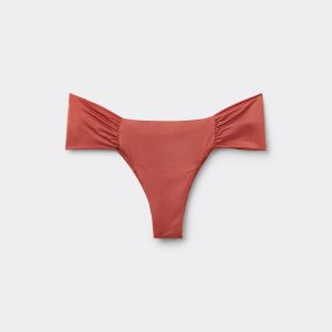 Brazilian bikini bottom with draped fabric at the sides that allow the height to be adjusted. The style features a particularly soft, shiny, silky-effect fabric. Fully lined and with invisible seams.