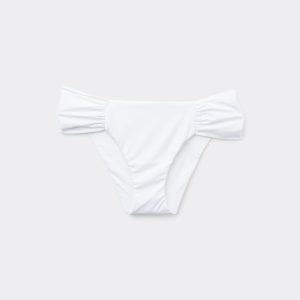 Bikini bottom with draped fabric at the sides that allows the height to be adjusted. The extremely soft fabric makes it pleasant to wear, offering a light and comfortable feel on the skin. Fully lined with invisible seams.