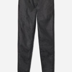 Faux leather five pocket leggings with actual front and back pockets. Zip and button closure. Skinny fit.