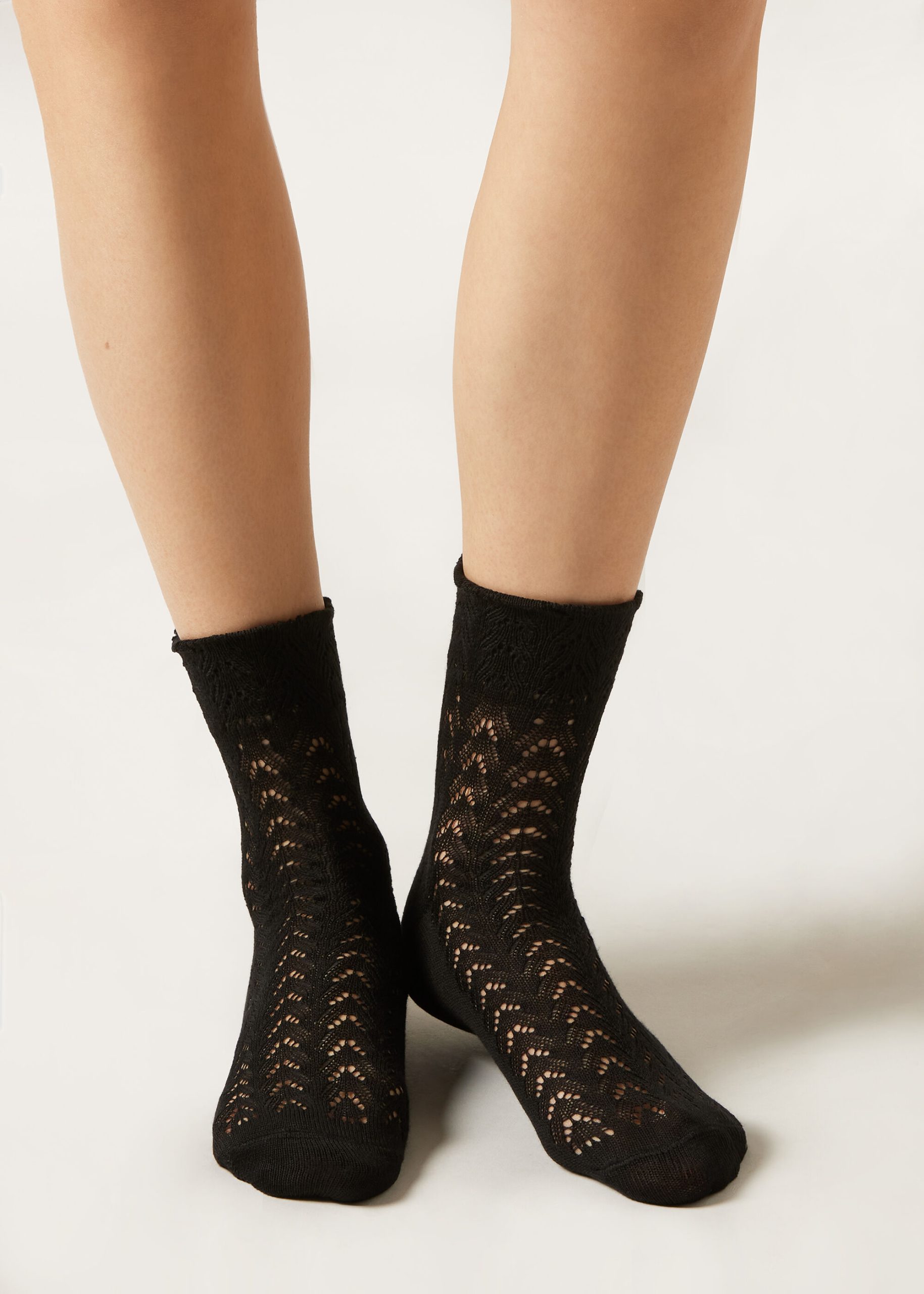 Women’s short socks in romantic and delicate soft cotton. The fretwork creates an elegant and breathable pattern, combining comfort and distinctive style.