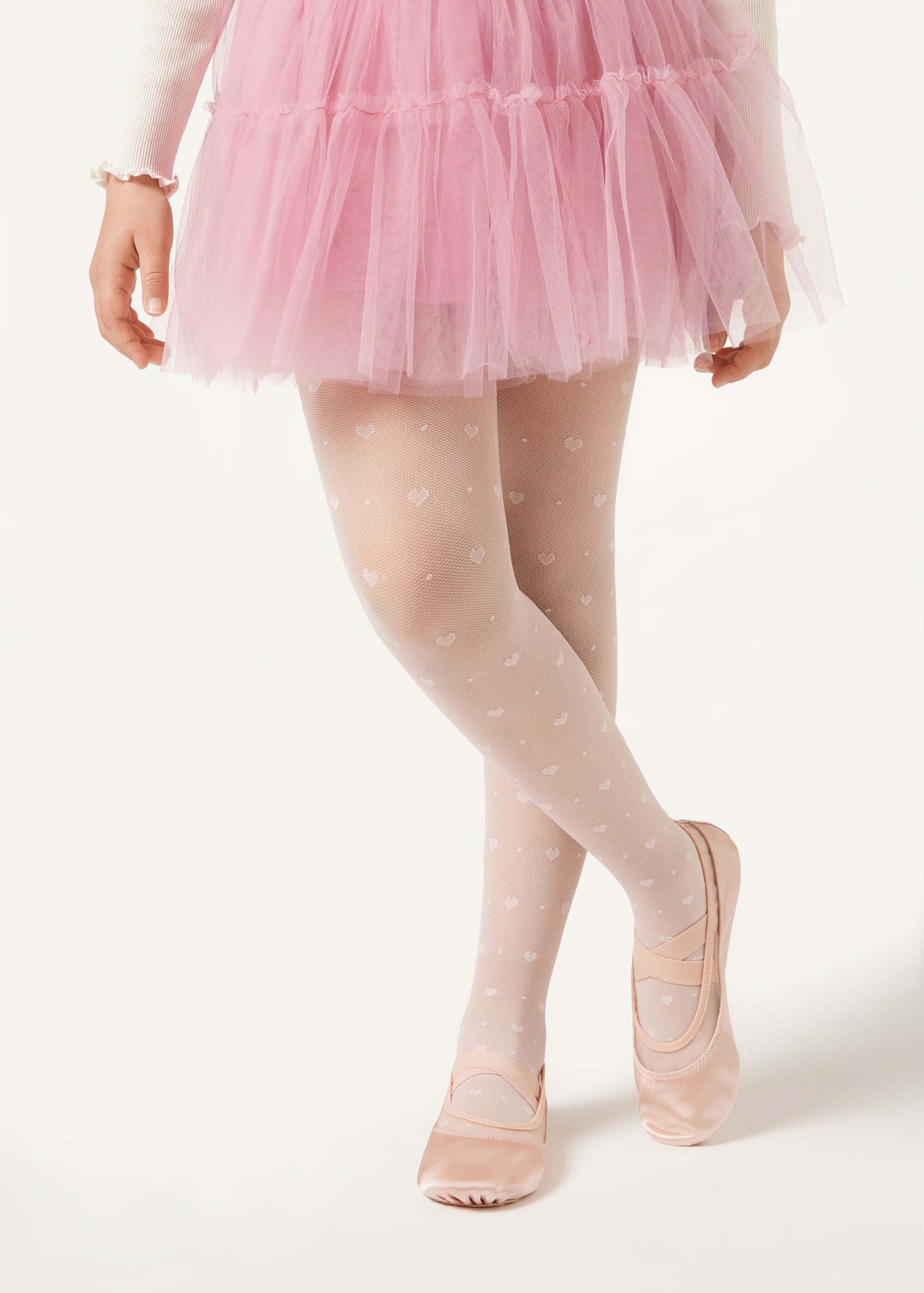 Girls’ 30 denier tulle tights featuring a fun and all over dot motif.