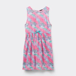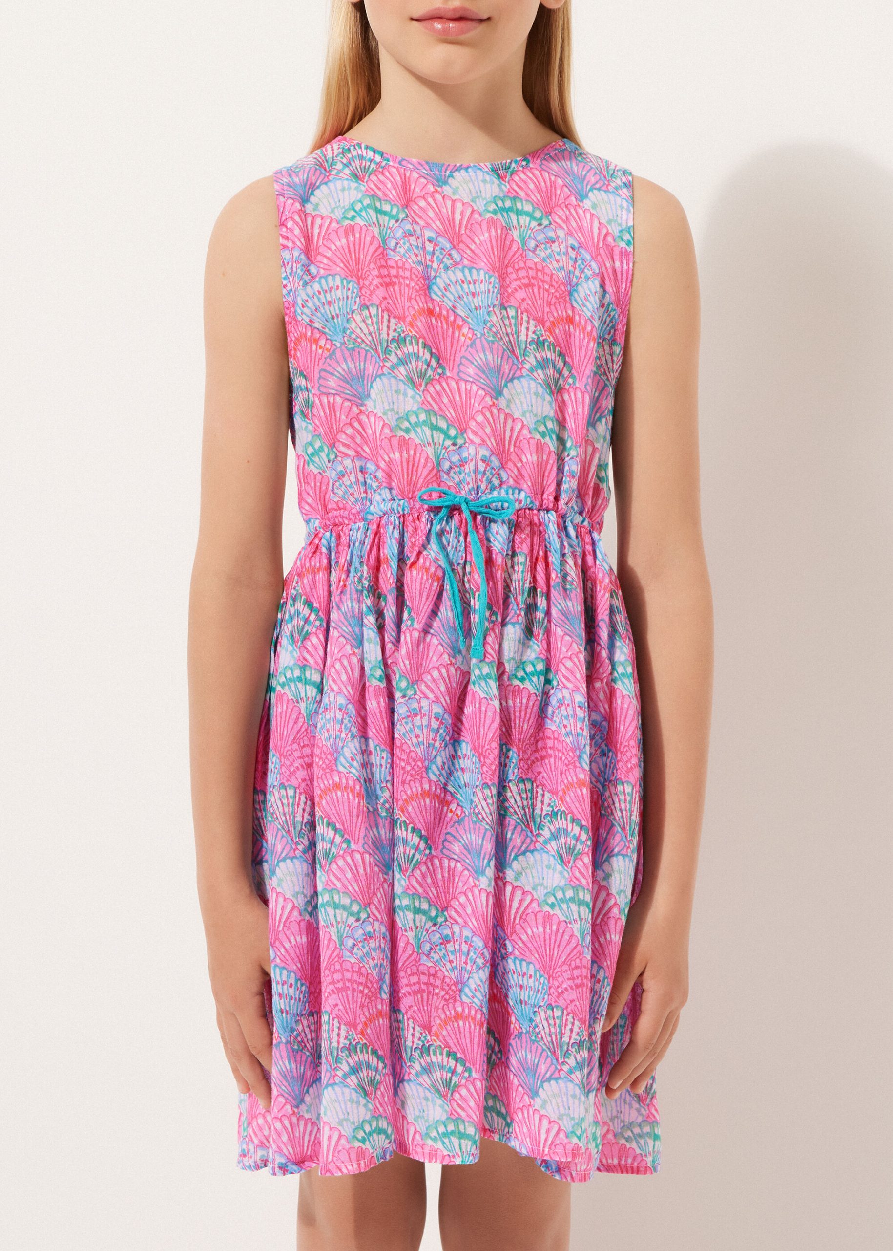 Girls’ dress in soft cotton, perfect as a cover-up. Lightweight and cool, it features a delicate colorful pattern that adds a touch of sweetness. Ideal for days at the beach or in the pool, it offers comfort and freedom of movement.
