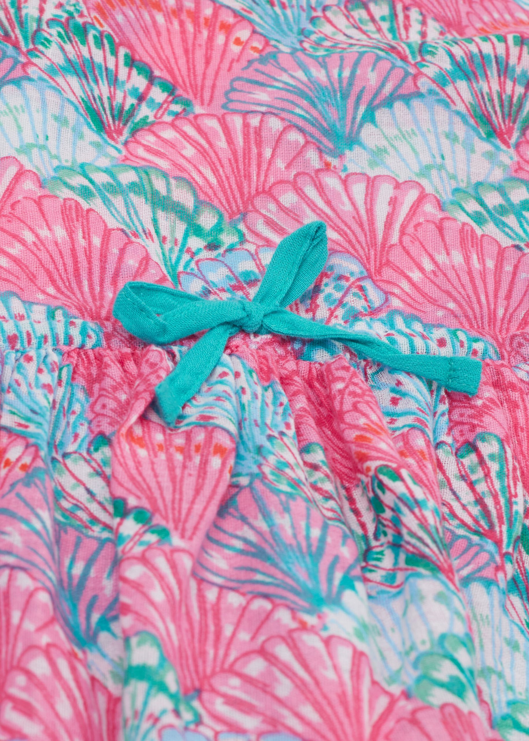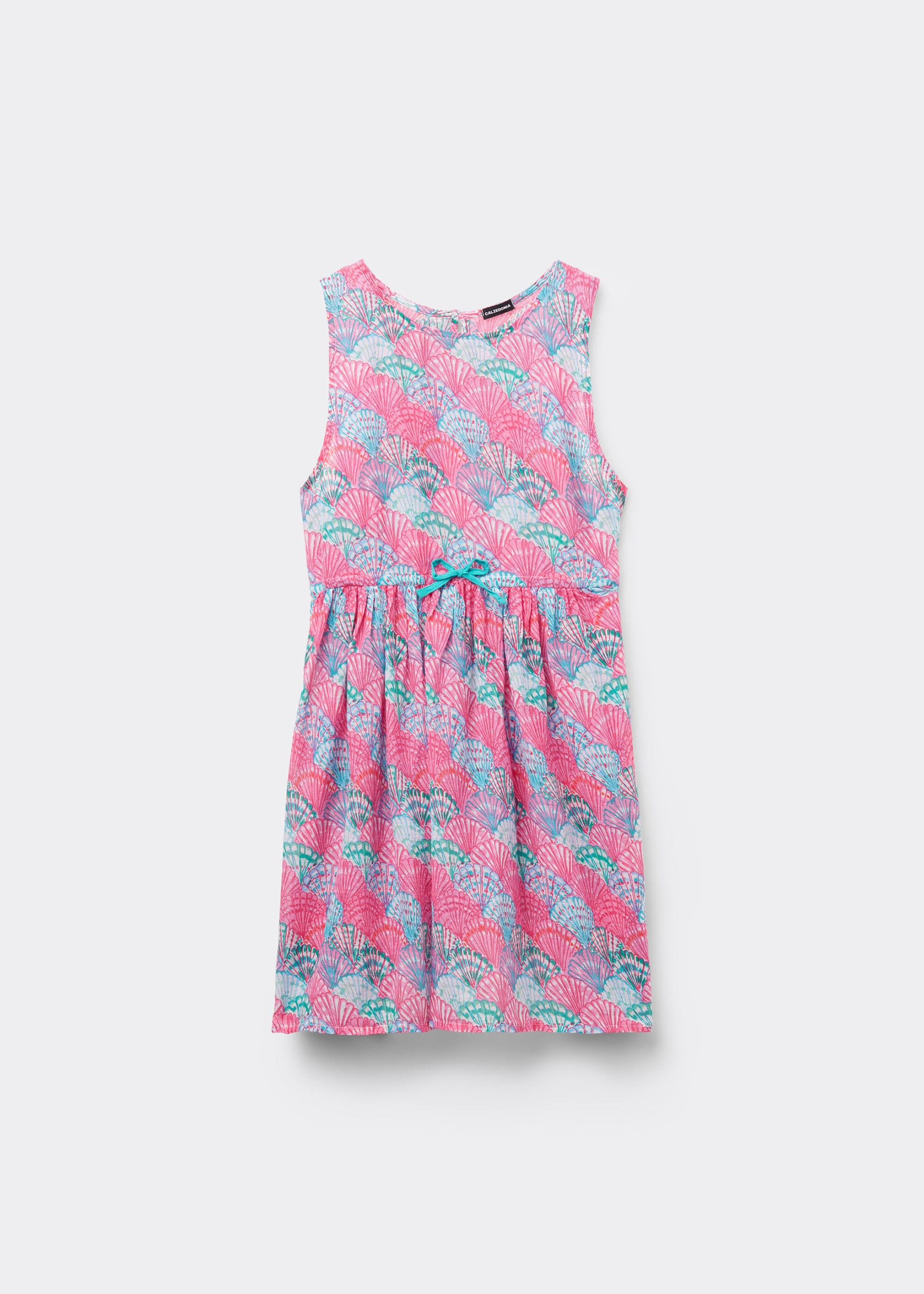 Girls’ dress in soft cotton, perfect as a cover-up. Lightweight and cool, it features a delicate colorful pattern that adds a touch of sweetness. Ideal for days at the beach or in the pool, it offers comfort and freedom of movement.