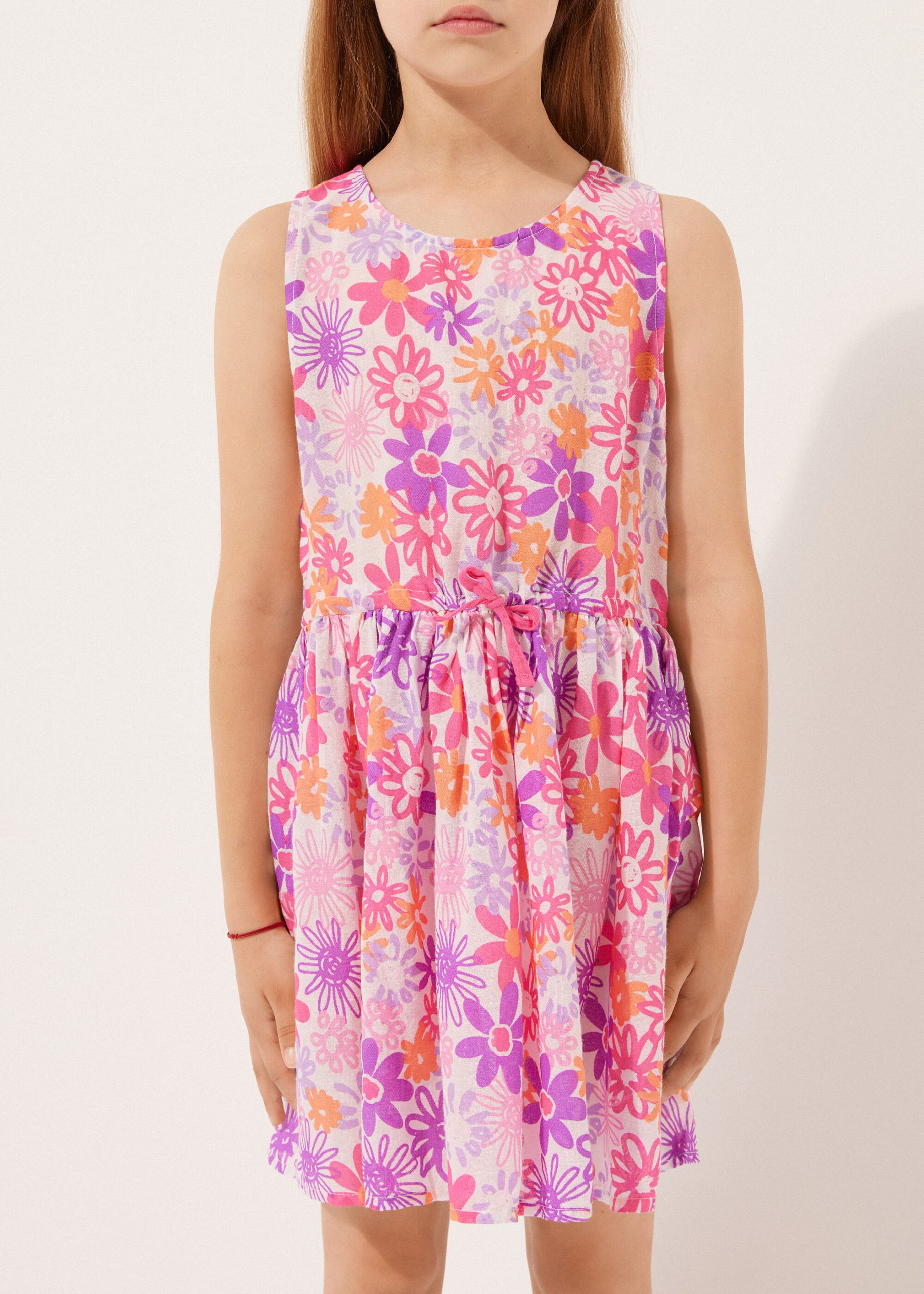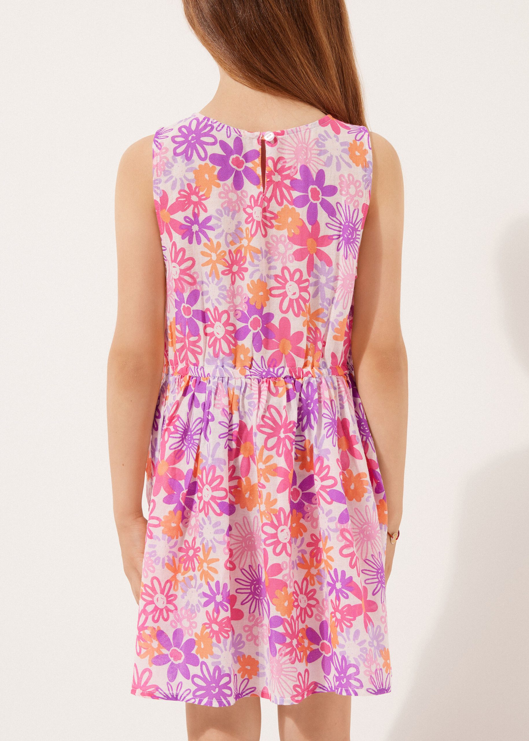 Girls’ dress in soft cotton, perfect as a cover-up. Lightweight and cool, it features a delicate colorful pattern that adds a touch of sweetness. Ideal for days at the beach or in the pool, it offers comfort and freedom of movement.