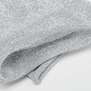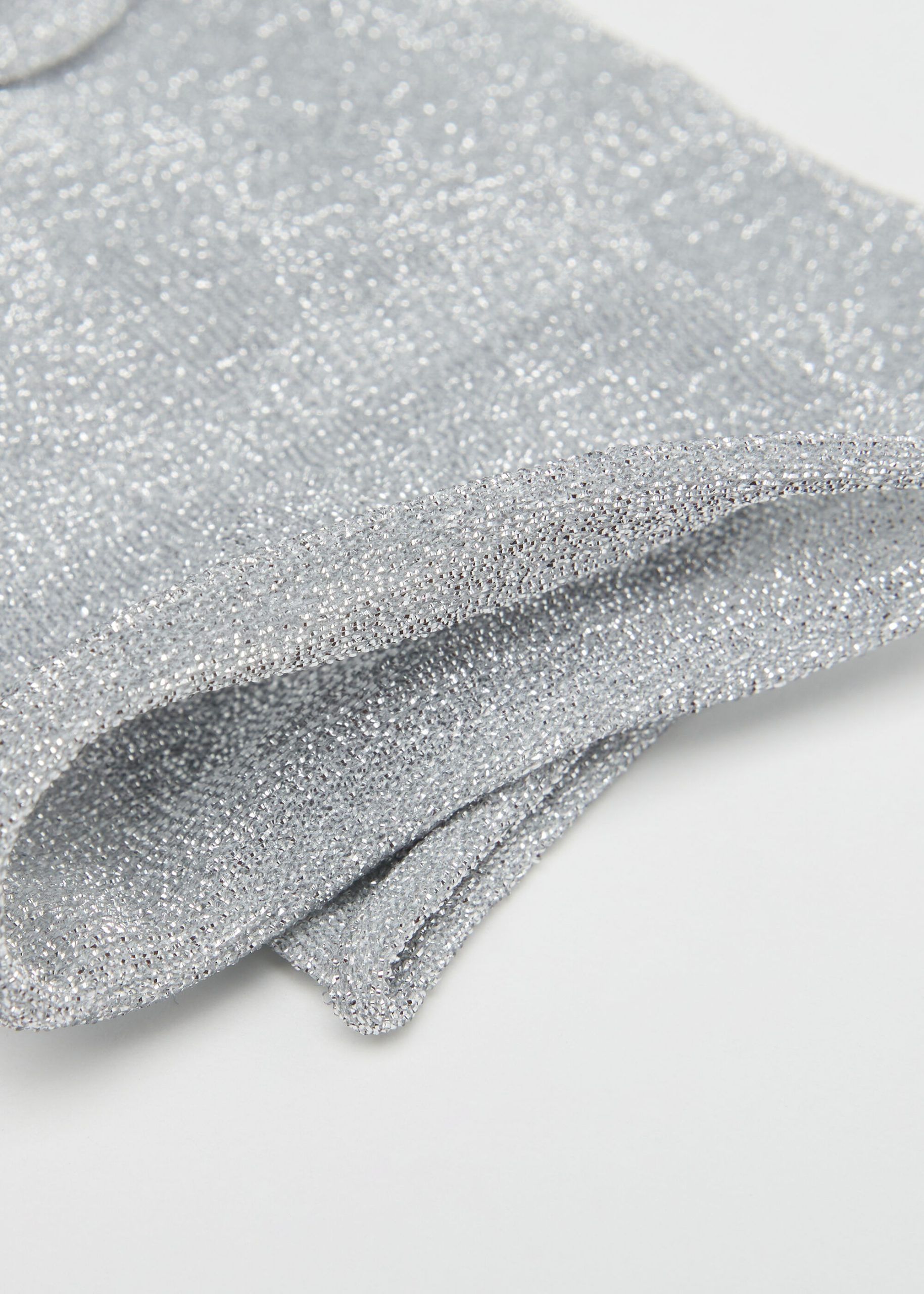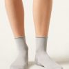Women’s opaque 50 denier short socks with glitter, slightly higher on the ankle, with raw edge trim.