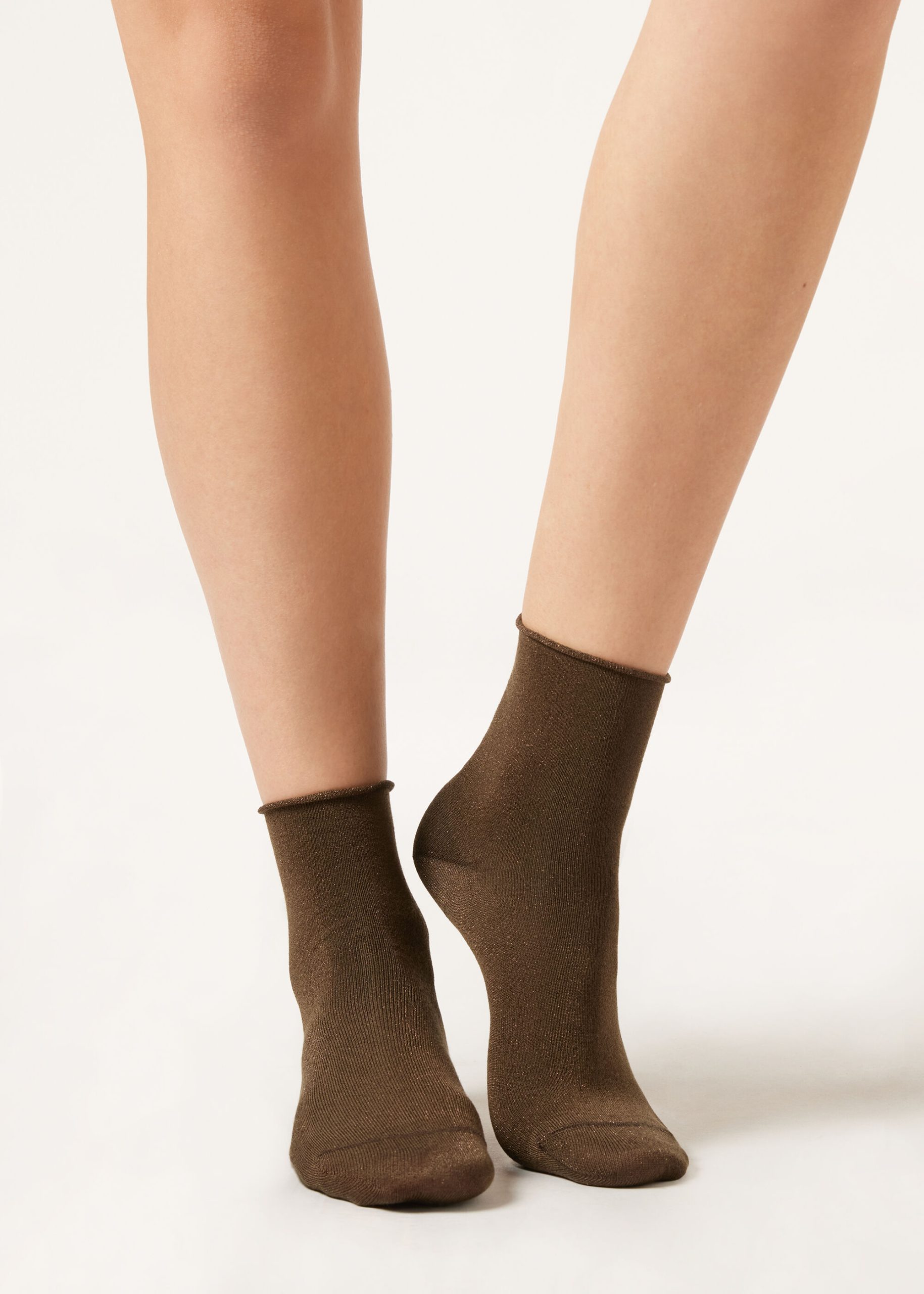Women’s short socks with glitter trim and comfort edge, for a shiny and cozy touch.