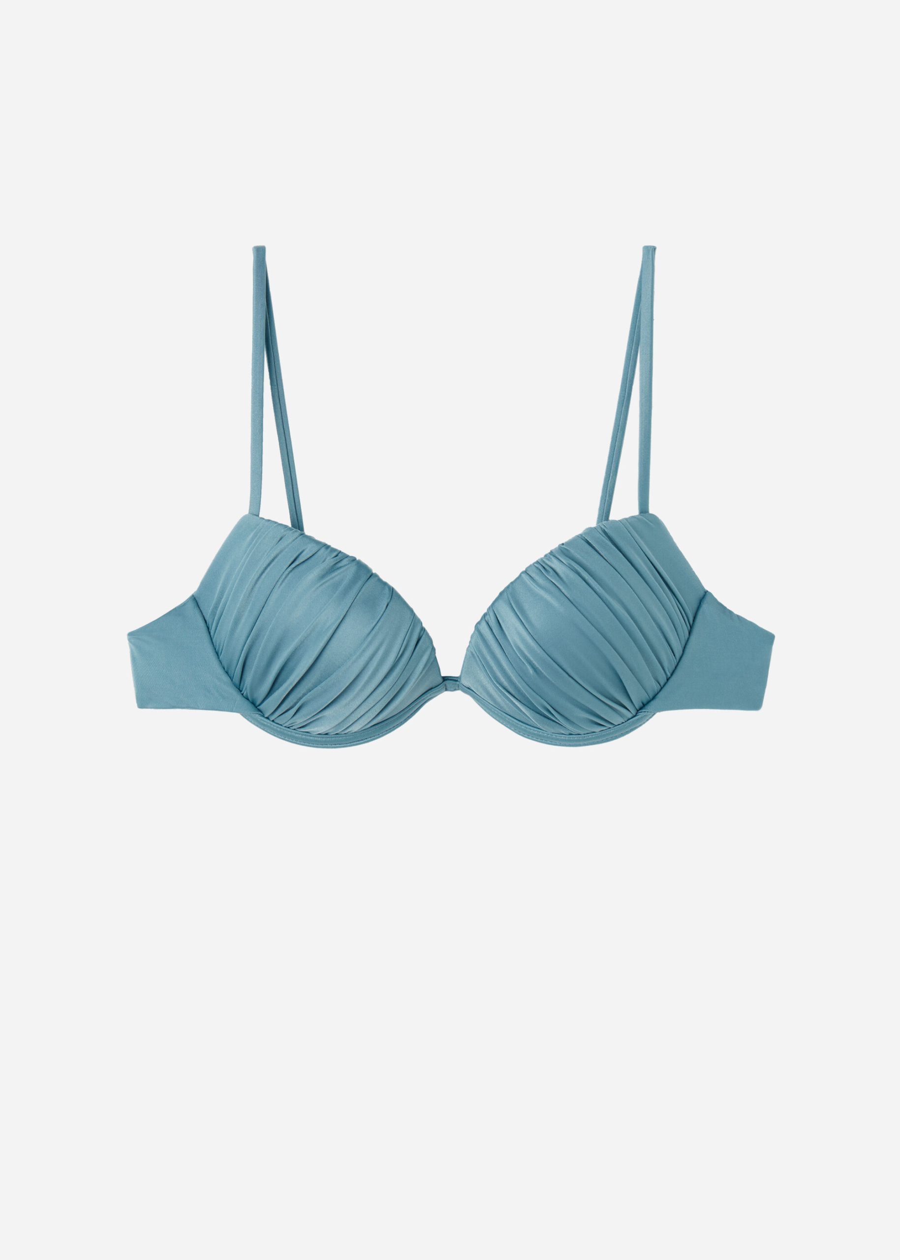 Graduated Padded Push Up Swimsuit Top Shiny Satin
