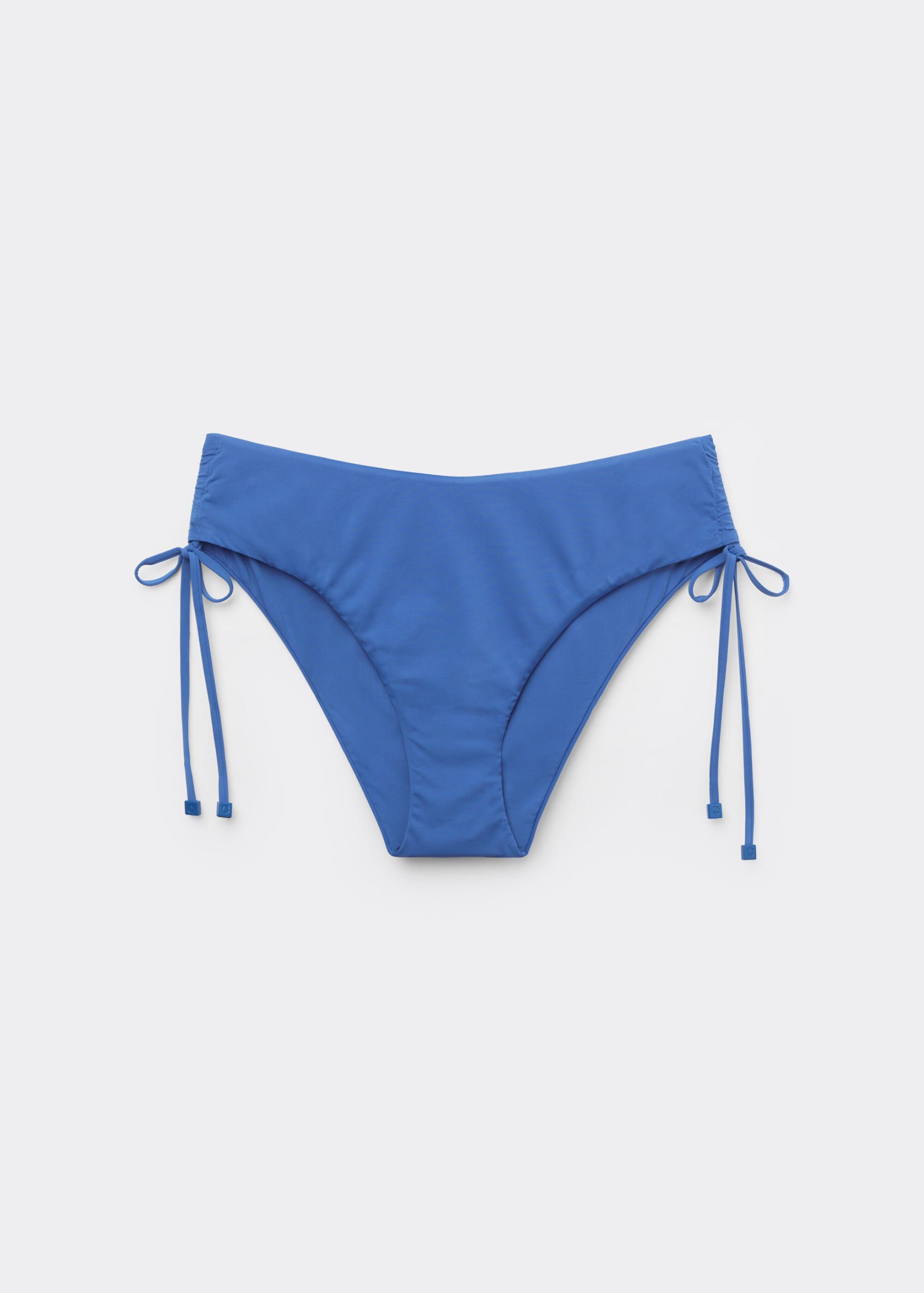 High waist bikini bottom with side drawstrings to adjust the fit of the leg openings, with squared aglets. The extremely soft fabric makes it pleasant to wear, offering a light and comfortable feel on the skin. Fully lined and with invisible seams.