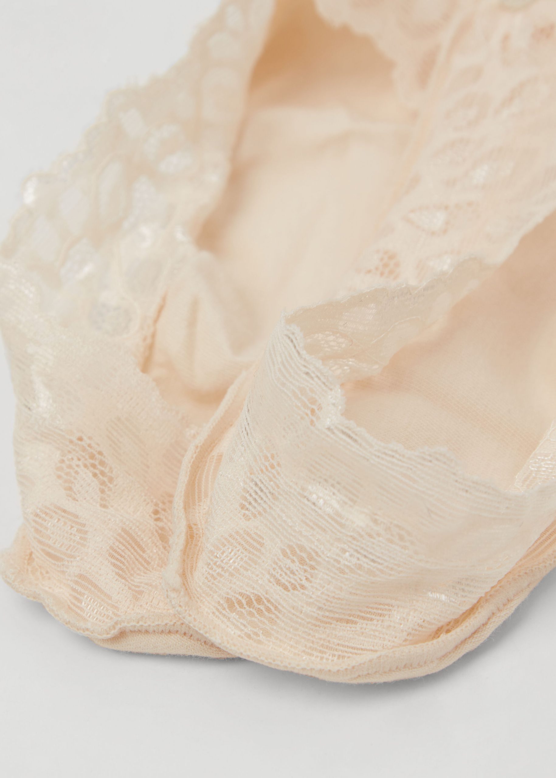 Women’s invisible socks in refined lace with comfortable cotton soles, ideal for low vamp shoes. They combine elegance and comfort with a discreet and feminine design.