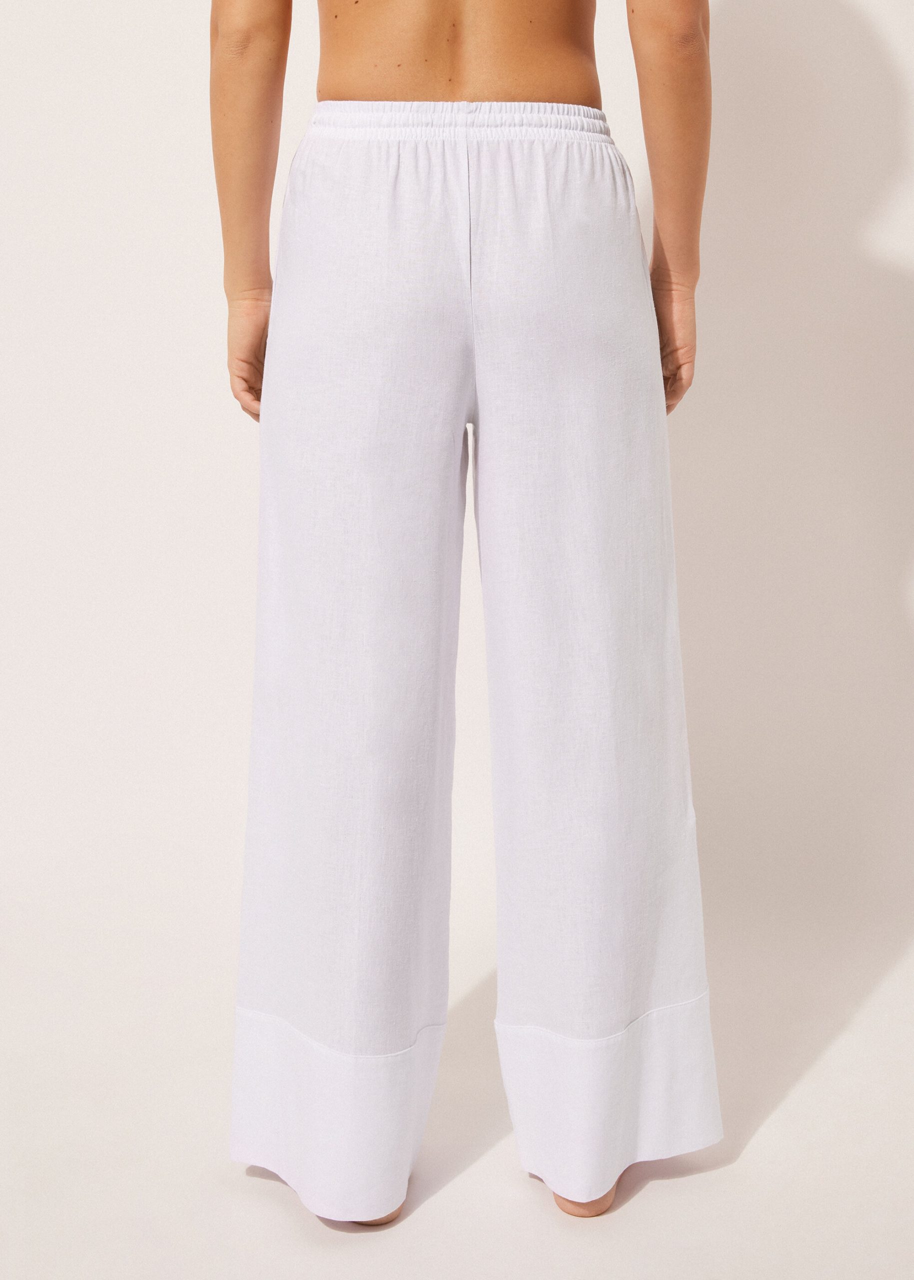 Palazzo pants in linen and viscose, perfect for those who love natural fibers. With a relaxed and comfortable fit, these pants offer a fluid and modern design, perfect for pairing with the 0BDA143 shirt.