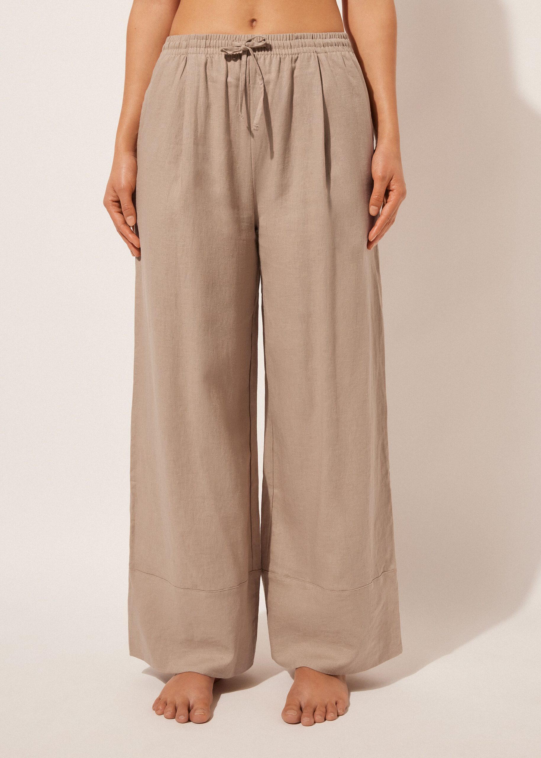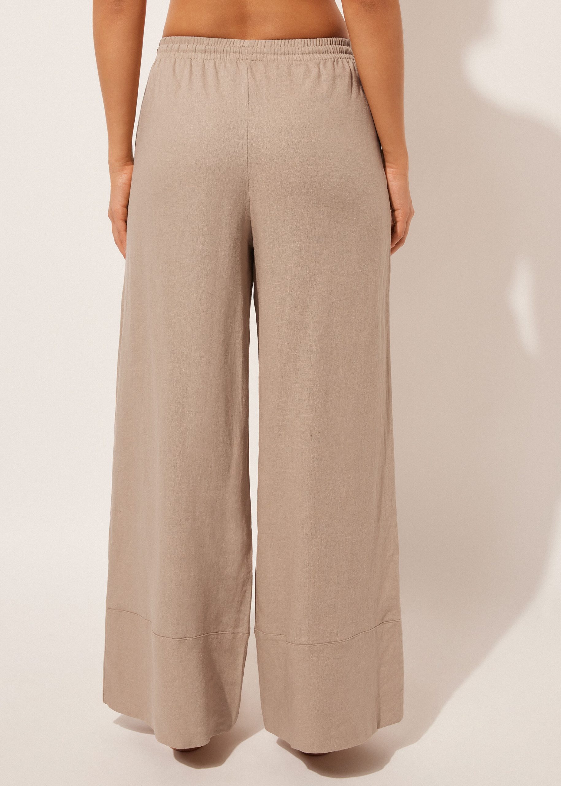 Palazzo pants in linen and viscose, perfect for those who love natural fibers. With a relaxed and comfortable fit, these pants offer a fluid and modern design, perfect for pairing with the 0BDA143 shirt.