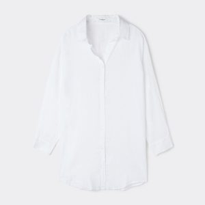 Button up shirtdress in linen for those who love natural fibers, with lapel collar and long sleeves. Above-the-knee length.