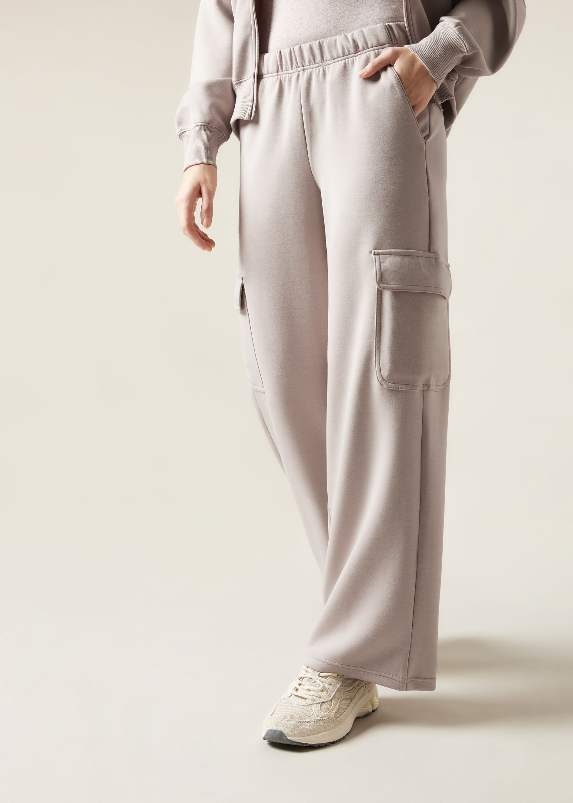 Cargo pants in high quality soft touch modal blend fabric, extremely supple and comfortable to the touch. Feature an elastic waistband and practical cargo-style patch pockets, they combine elegance and functionality for a modern and versatile look.