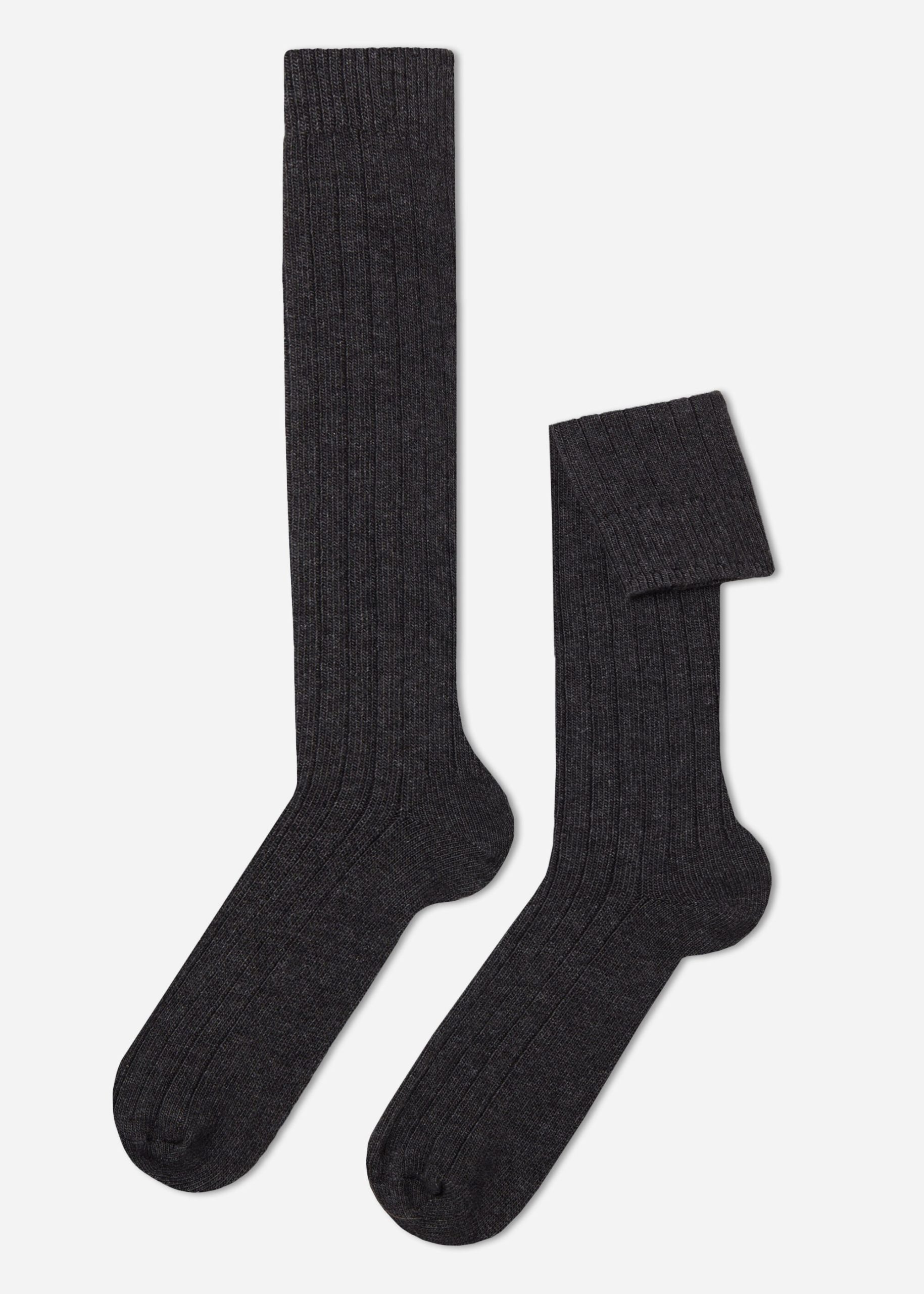 Men’s long ribbed socks with wool and cashmere, a warm and comfortable material.