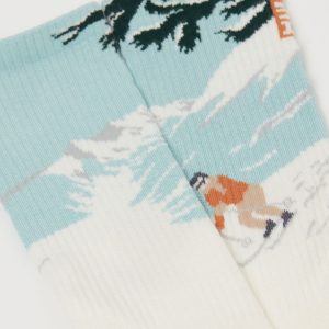 Women’s short socks with cashmere and a terry cotton sole, with a sporty look and pattern inspired by stunning mountain town scenery. Perfect for facing winter days in comfort and with a touch of elegance, they offer softness and warmth, ideal for those seeking a glamorous look and wanting to stand out during outdoor activities.