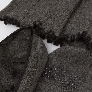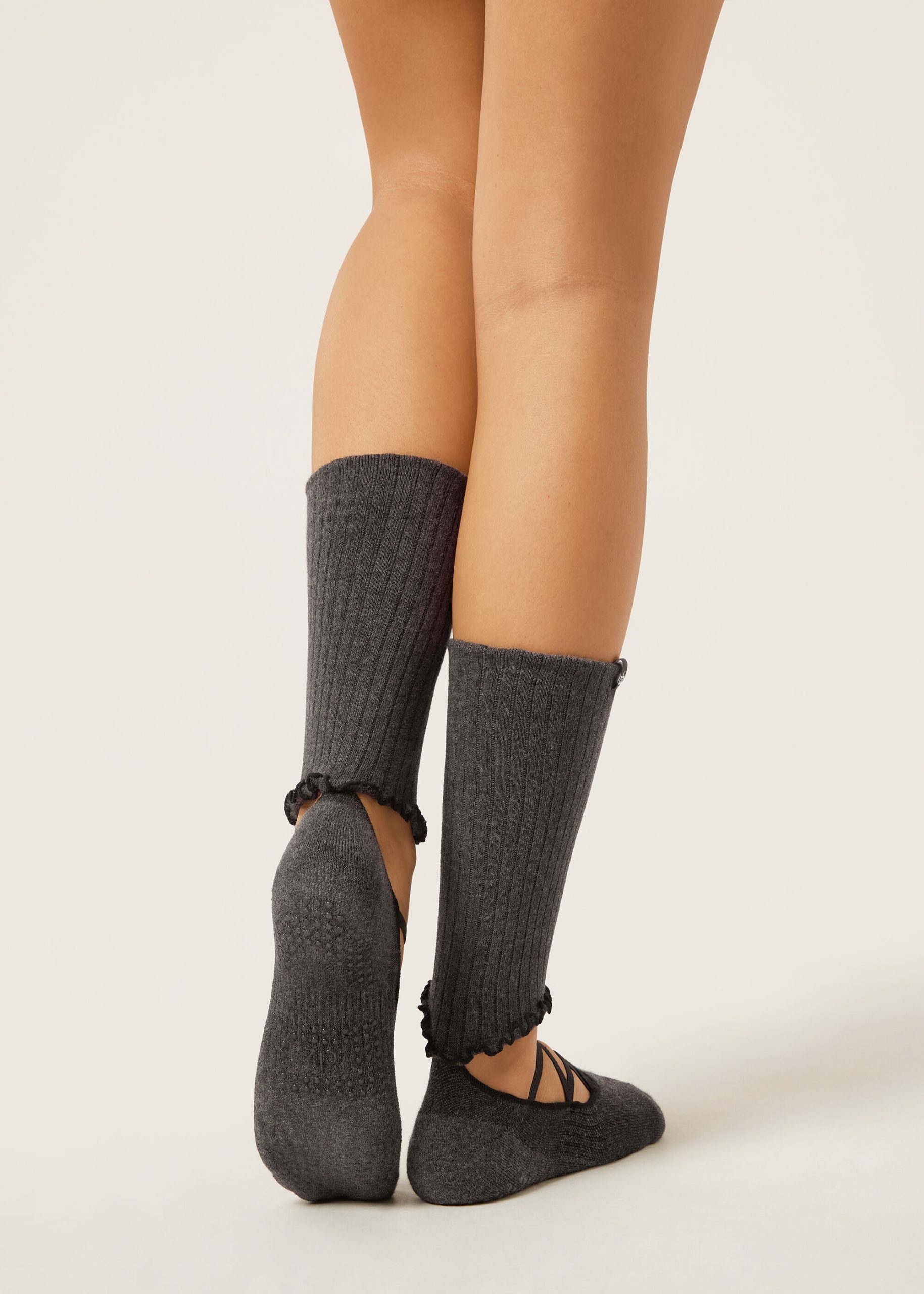 Women’s non-slip Pilates socks in ribbed cotton, with lined leg and ballerina-style foot. They feature a crossover lace-up closure on the instep and a non-slip insole for a secure fit during activity.