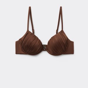 Push-up bikini top with lightly padded cups and underwire to guarantee support and provide volume. The style features a bright fabric with a silky effect. Fixed Shoulder Straps. Rear closure with double adjustment hook.