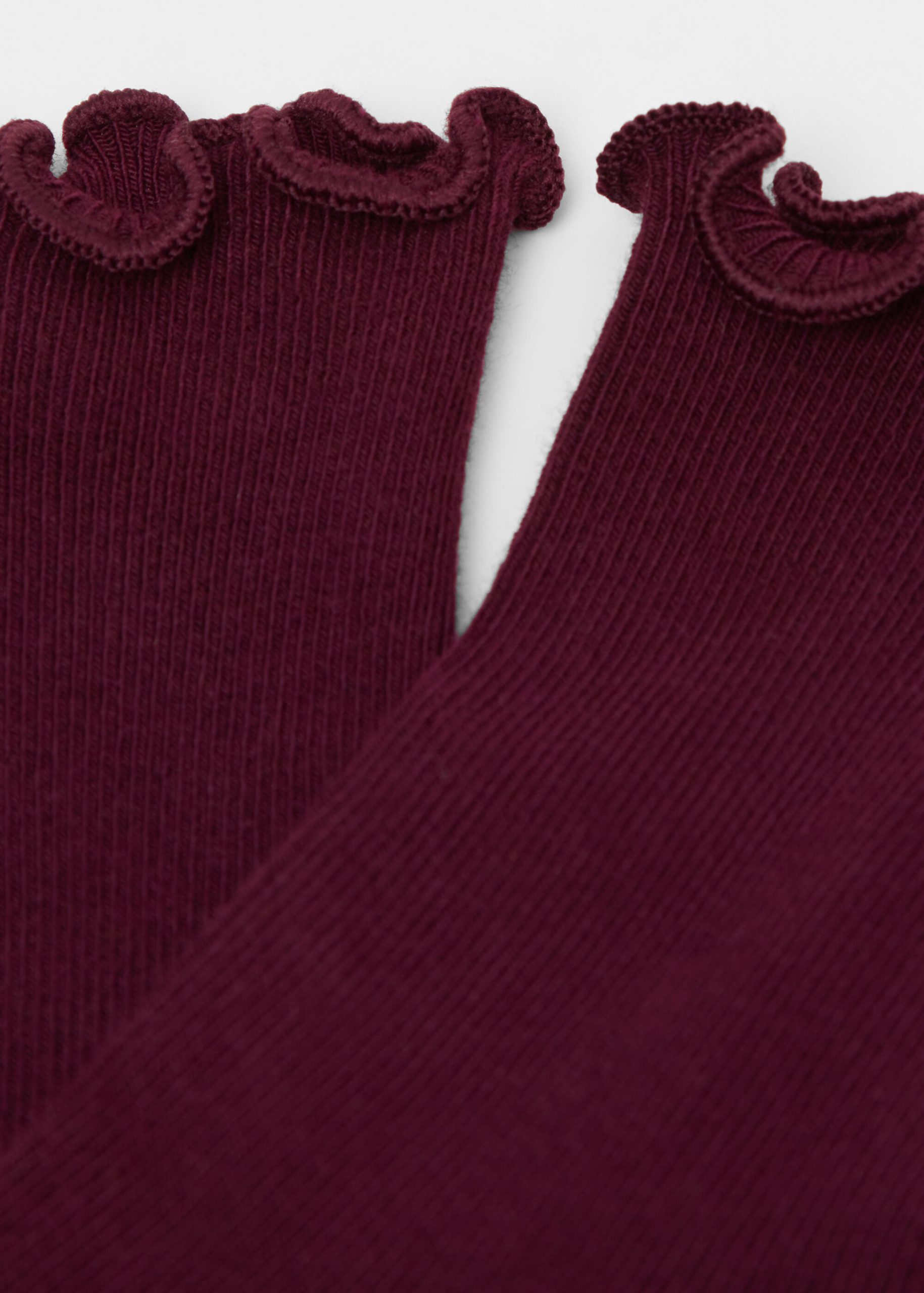 Women’s short ribbed cotton socks with romantic trim detailing.
