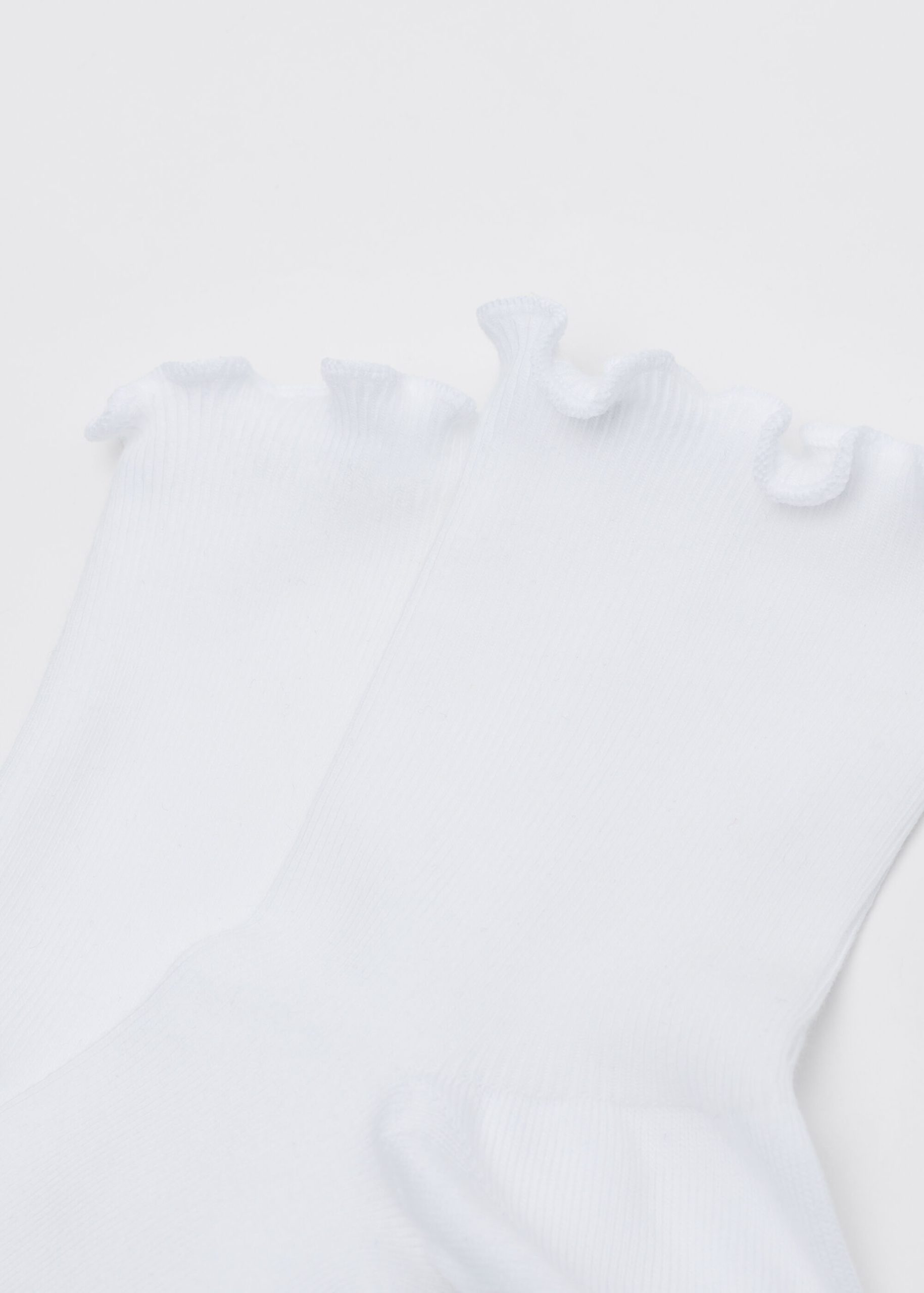 Women’s short ribbed cotton socks featuring a romantic cuff.