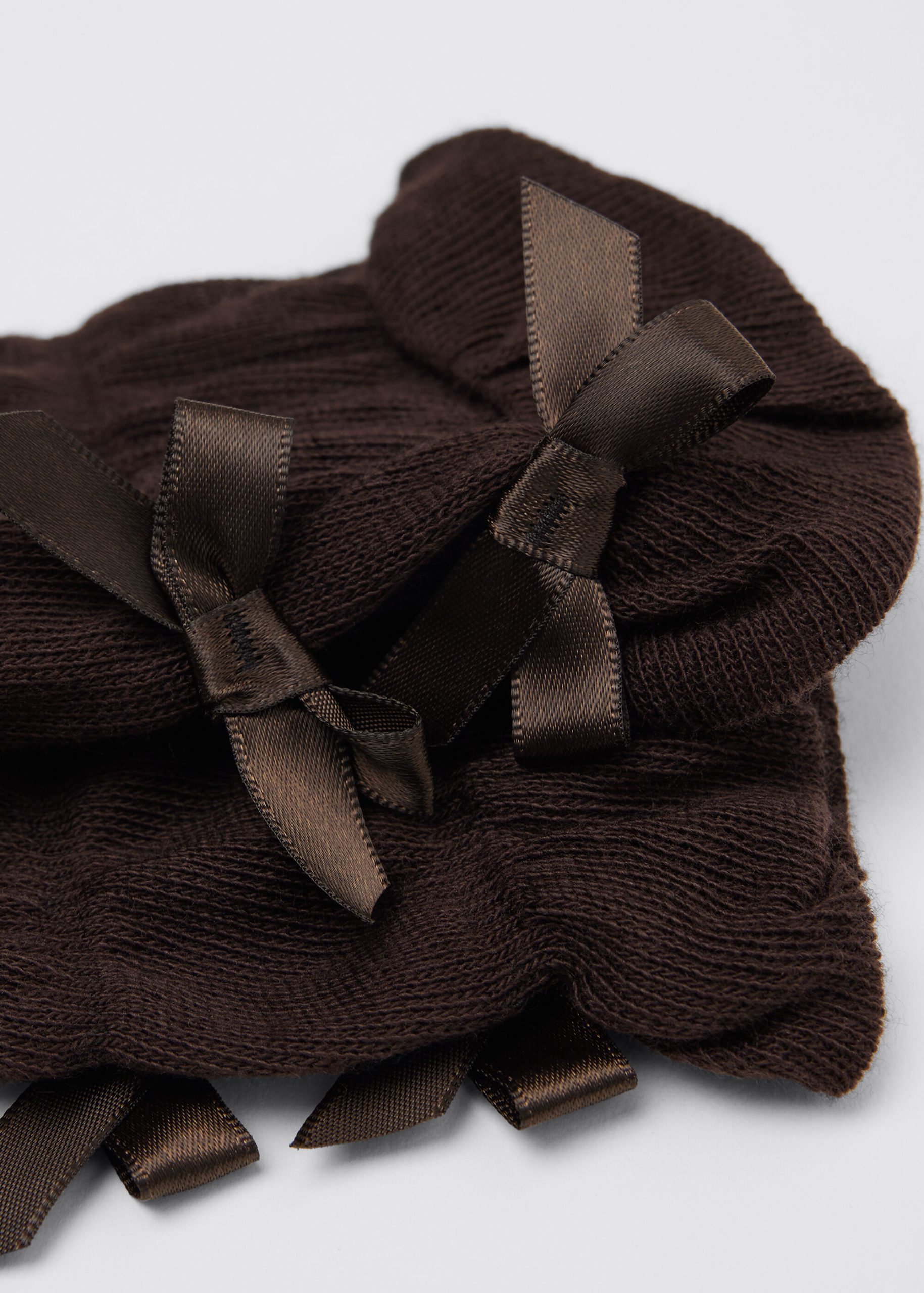 Women’s short socks in soft cotton offer a sweet and original touch. The gathered detailing on the leg creates a delicate effect, while the two bows at the back add a unique detail.