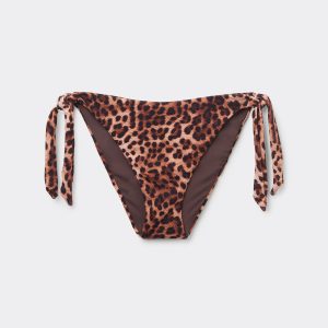 Bikini bottom with side tie closure to adjust the fit. The slightly rounded waist at the front allows for both a classic or more high-cut fit, depending on one’s physique. The style features an elegant animal pattern and lightly ruched fabric. Fully lined and with invisible seams.