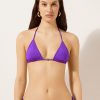 String bikini bottoms with side ties to adjust the fit. The slightly rounded waist at the front allows for both a regular and more high-cut fit, depending on one’s physique. It features a minimal fit that exalts the silhouette with a touch of sensuality and refinement. The bright silk-effect fabric embellished by elegant golden details radiates a sophisticated sensation of discrete luxury.