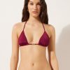 Thong bikini bottoms with side string ties to adjust the fit. It features a minimal fit that exalts the silhouette with a touch of sensuality and refinement. The slightly rounded waist at the front allows for both a regular and more high-cut fit, depending on one’s physique. The bright silk-effect fabric embellished by elegant golden details radiates a sophisticated sensation of discrete luxury. Fully lined with invisible seams.