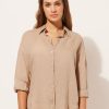 Thong bikini bottoms with side string ties to adjust the fit. It features a minimal fit that exalts the silhouette with a touch of sensuality and refinement. The slightly rounded waist at the front allows for both a regular and more high-cut fit, depending on one’s physique. The bright silk-effect fabric embellished by elegant golden details radiates a sophisticated sensation of discrete luxury. Fully lined with invisible seams.
