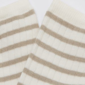Women’s short socks in ribbed soft cotton, they offer style and comfort. The striped pattern adds a classic and versatile touch. Ideal for those looking for quality and a timeless look.