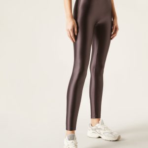 Women’s super shiny skinny leggings in silk effect stretch satin fabric. Waistband with soft, interior adhesive elastic.