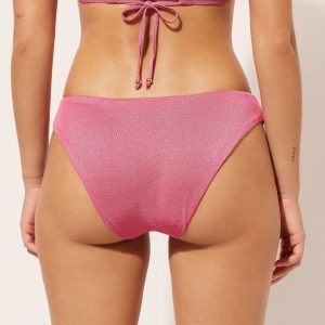 Fully lined bikini bottoms. The slightly rounded waist at the front allows for both a classic or more high-cut fit, depending on one’s physique. Soft fabric with shiny lamé thread.