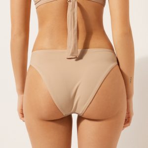 Fully lined bikini bottoms with invisible seams in order to not leave marks. The rounded waist at the front allows for both a classic or more high-cut fit, depending on one’s physique. The bright glittery fabric stands out with its sophisticated shine, perfect for a glamorous look.