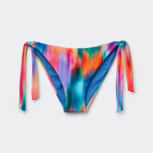 Bikini bottoms with side tie closure to adjust the fit. A colorful fabric full of bold and bright rainbow shades that blend fluidly for a dynamic and luminous effect. The slightly rounded waist allows it to be worn either as normal or with the legs higher to show off the physique. Fully lined with invisible seams.