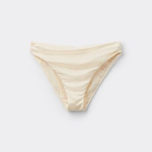 Fully lined bikini bottoms with invisible seams. The style features a bright fabric with a silky effect. The slightly rounded waist at the front allows for both a classic or more high-cut fit, depending on one’s physique.