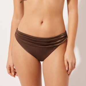 Fully lined bikini bottoms with invisible seams. The style features a bright fabric with a silky effect. The slightly rounded waist at the front allows for both a classic or more high-cut fit, depending on one’s physique.
