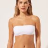 Tank-style bikini top, wireless and unpadded for a natural effect. The side boning guarantees good support. The style features bright fabric with a gold accessory at the center of the bust. Back closure with two sets of hooks.