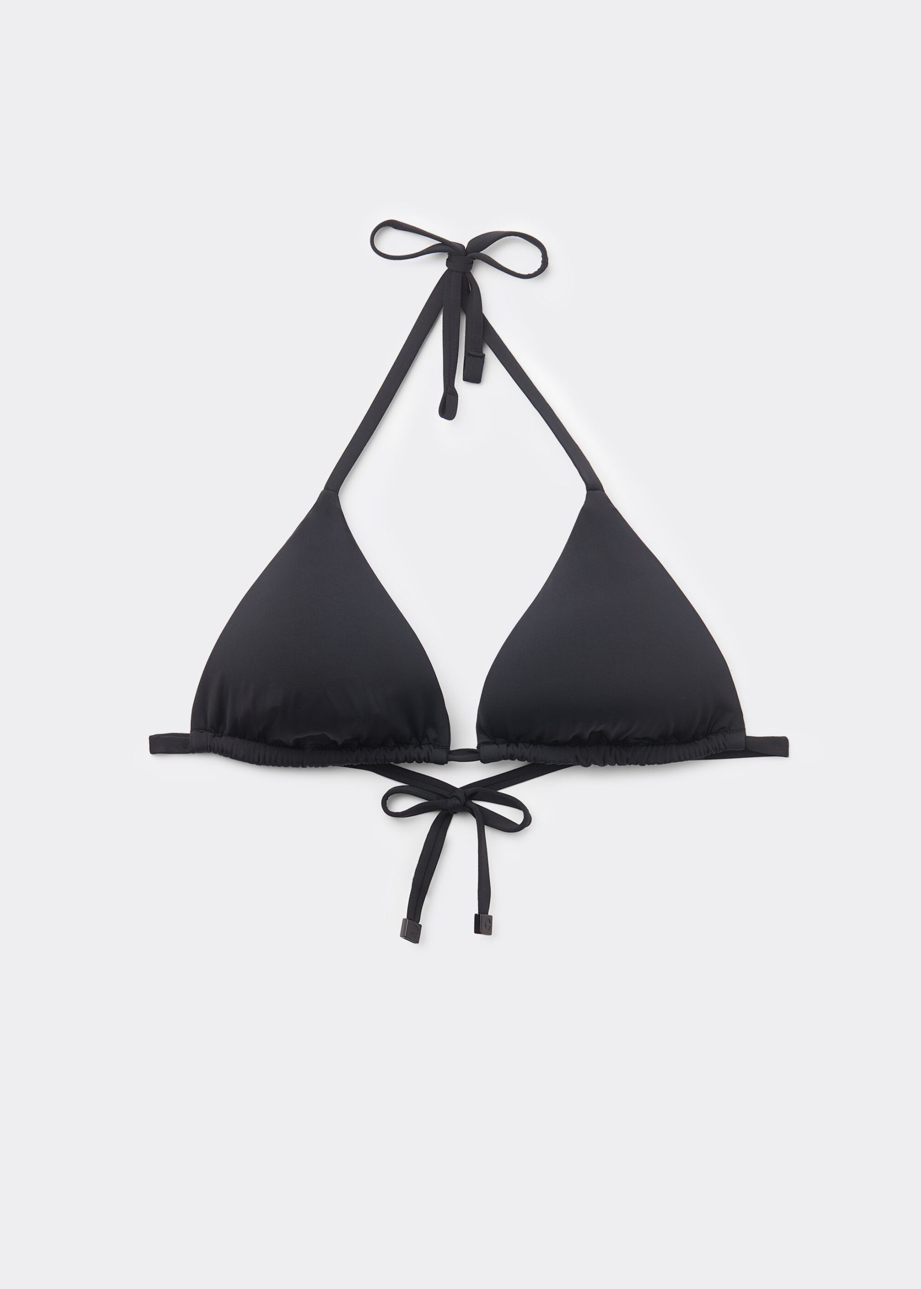 Slide triangle bikini top with removable padding, wireless for a natural effect. The extremely soft fabric makes it pleasant to wear, offering a light and comfortable feel on the skin. The shoulder straps have eyelets on the ends so they can be hooked onto the back band or tied behind the neck. Back string tie closure.