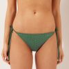 Slide triangle style bikini top with removable padding, wireless, featuring a minimal fit that exalts the silhouette with a touch of sensuality and refinement. The bright silk-effect fabric embellished by elegant golden details radiates a sophisticated sensation of discrete luxury. The straps have an eyelet at the end to insert them on the underband or fasten behind the neck, while the string tie fastening on the back guarantees an adjustable fit. Perfect for a sophisticated and irresistible summer look.