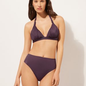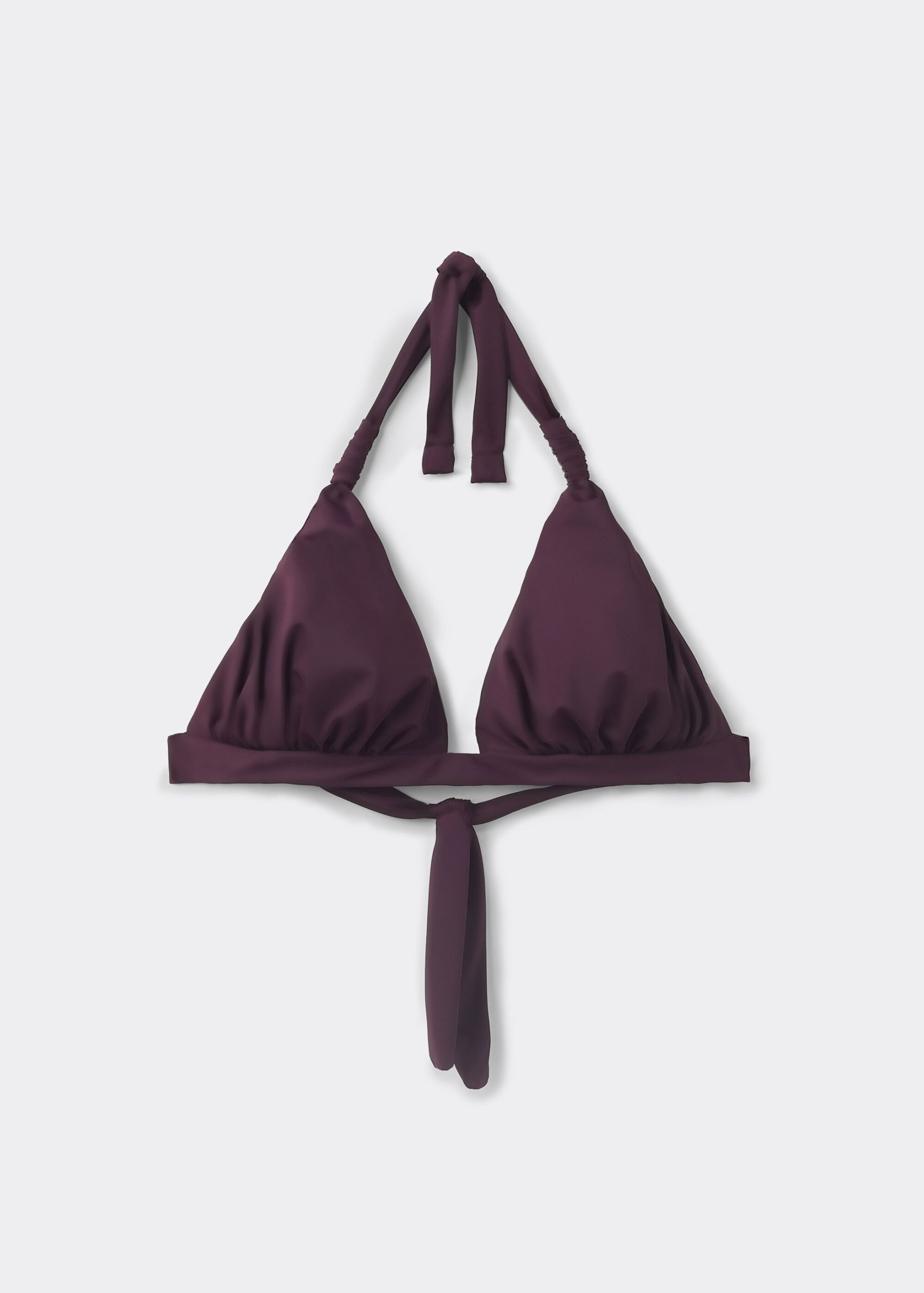 Wireless triangle bikini top with light removable padding. The compact fabric, designed to exalt and enhance the body’s curves, ensures excellent support and is studied to make every woman feel at ease without constraint. Adjustable shoulder straps. Back closure with two hook-and-eye closures to improve the fit of the underband.